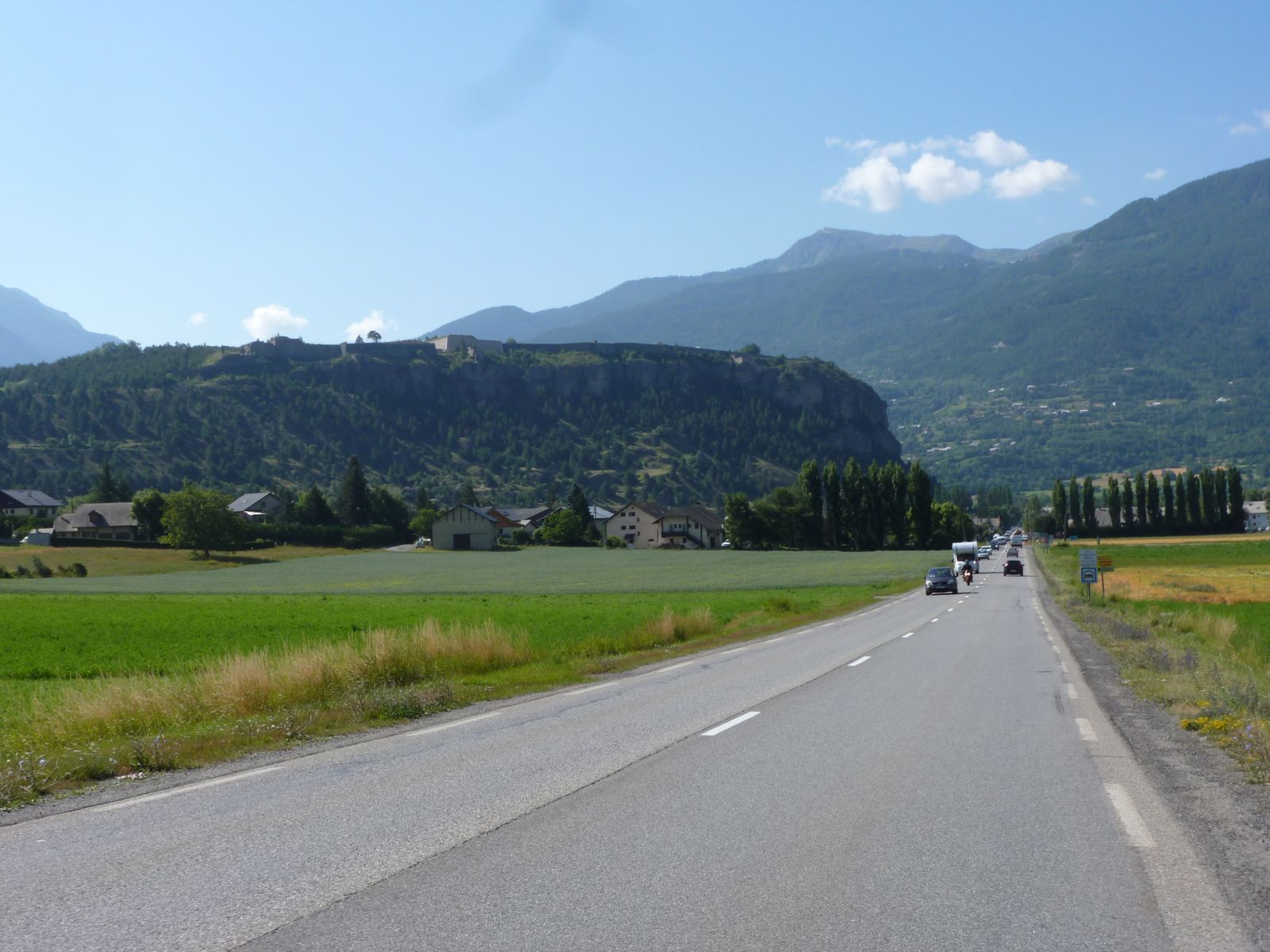 Je descends toute la vallée jusqu'à Briançon. D'ici, je poursuis sur la grosse N5 en direction de Gap/Embrun. Je pensais être énormément gêné par le trafic automobile sur cet axe, mais en réalité, une bande cyclable rend ce passage aisé. Même plus loin, lorsque cette bande disparaît, je suis en sécurité et le trafic n'est pas si méchant.