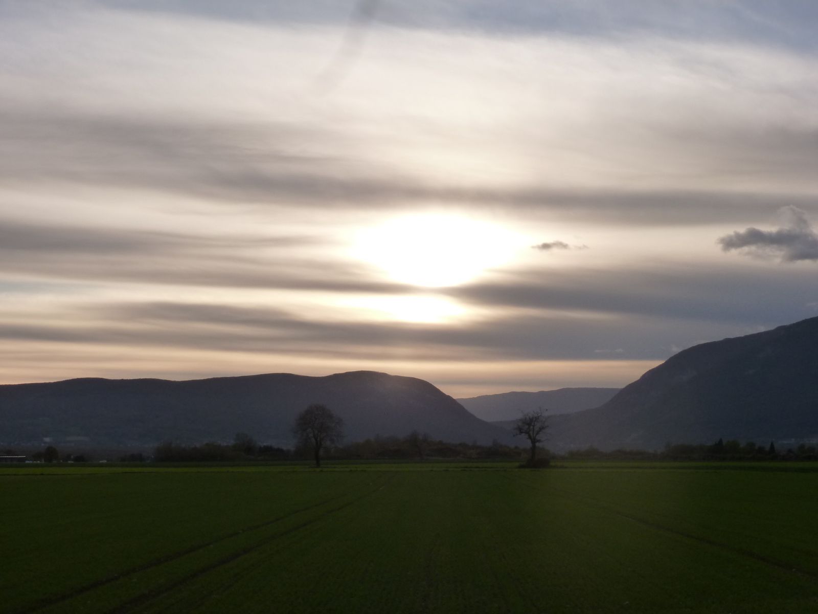 Les prochains kilomètres seront une succession de courtes côtes et de redescentes tout aussi courtes. Au village de Chessenaz, je trouve des toilettes publiques avec un point d'eau. Je fais un dernier plein des bidons, et je repars sous le soleil. Il fait un temps superbe en cette fin d'après midi.