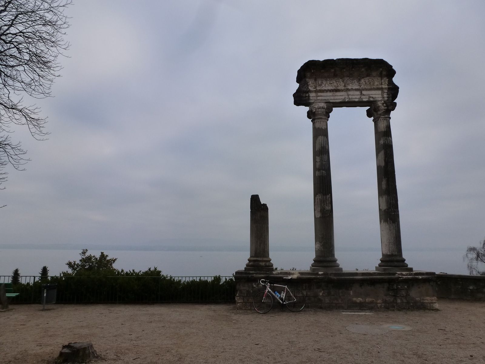 Le lac et les ruines romaines... vues de la place des Marronniers. C'est le bon moment pour sortir la petite gourde de... crème de marrons !