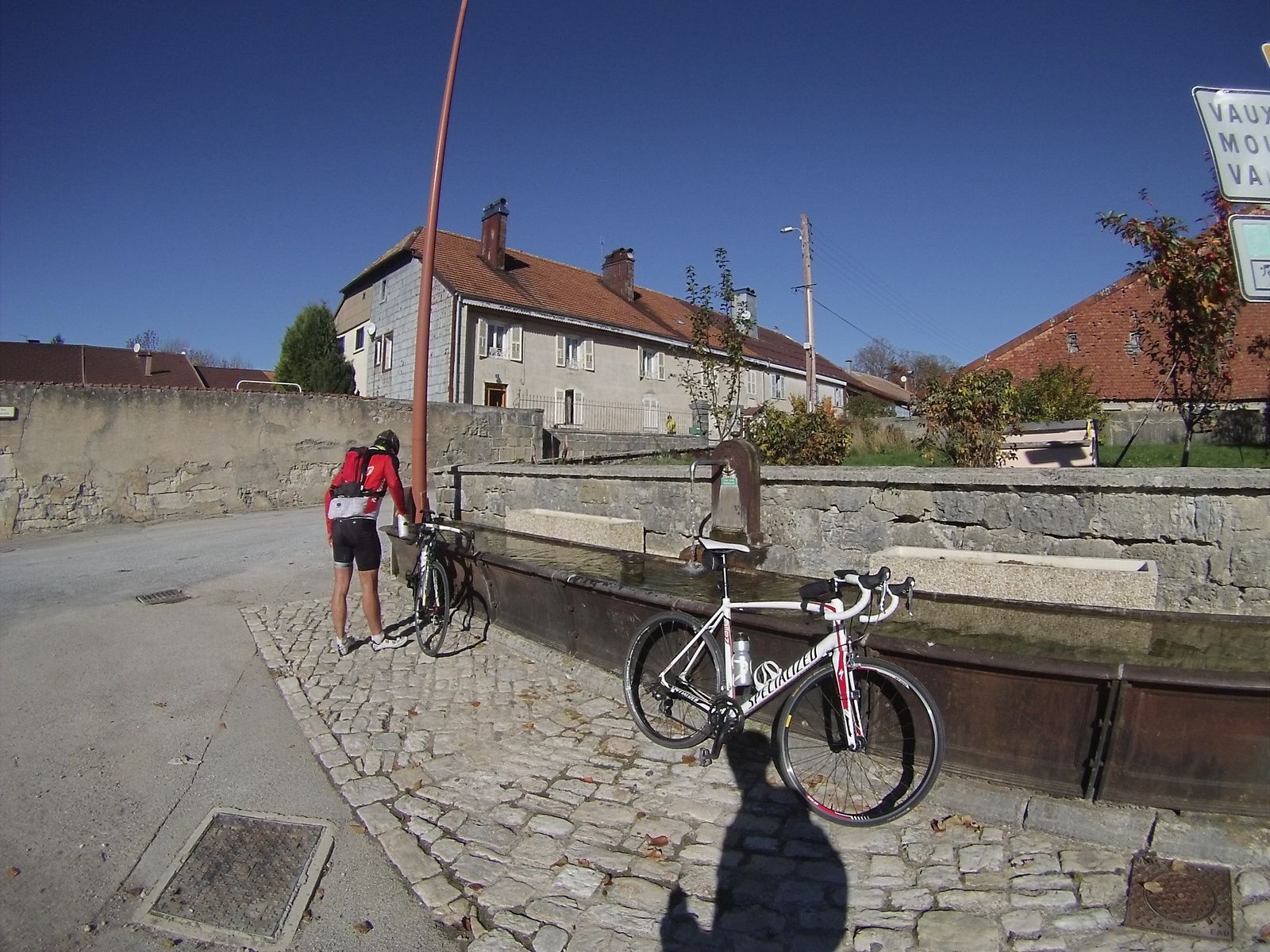 A Bonnevaux, c'est la pause à la fontaine du village. Puis on remet le couvert.