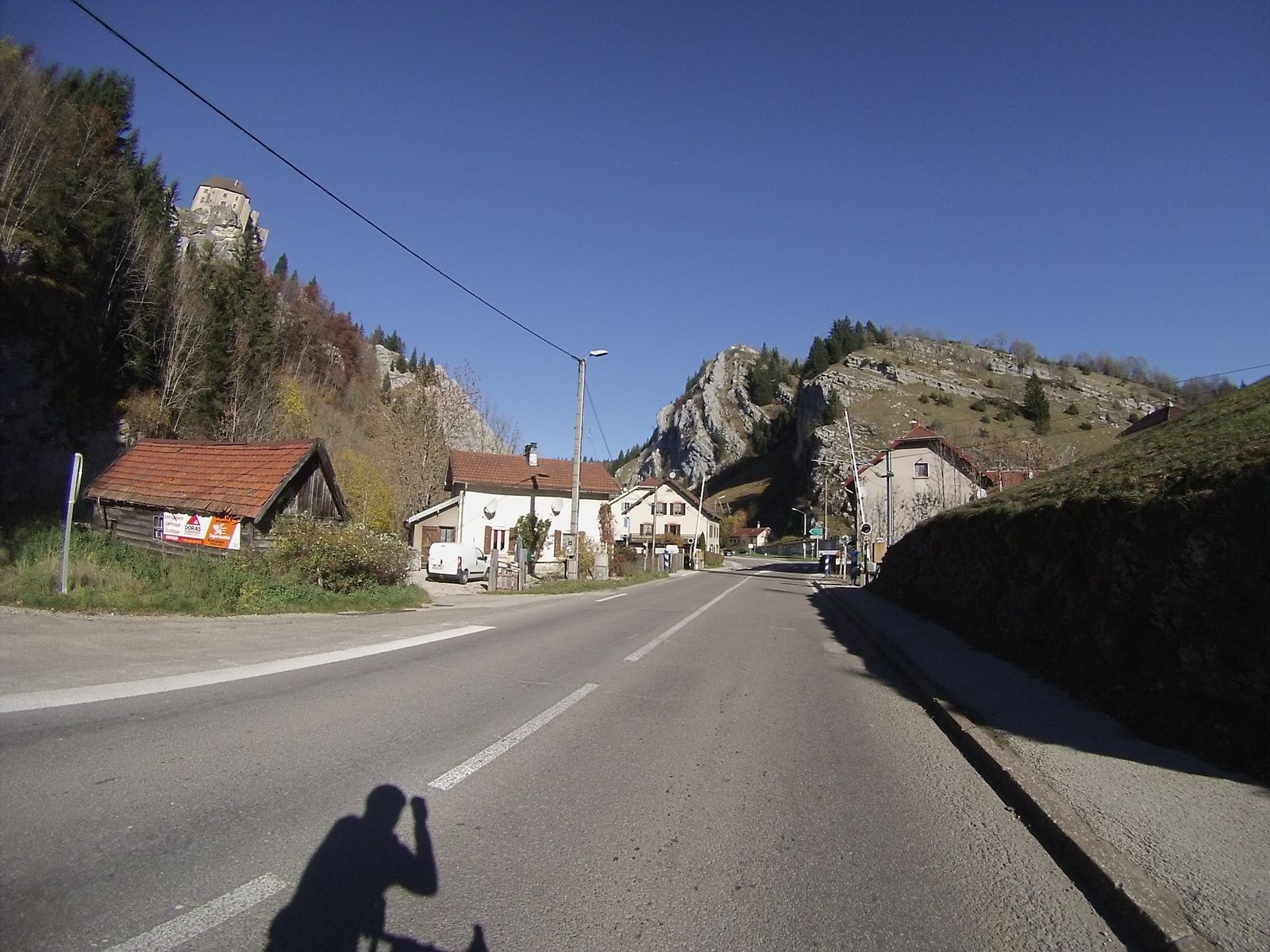 Mignovillard: la boucle dont je parlais plus haut est bouclée. Reste à aller explorer la partie ouest et jurassienne du parcours. Ca se bosselle un peu, notamment au niveau de Nozeroy, où nous passons par les remparts... ça monte sec et ça redescend encore plus sec... puis on repart en montée pour atteindre le village suivant, sur la D19.