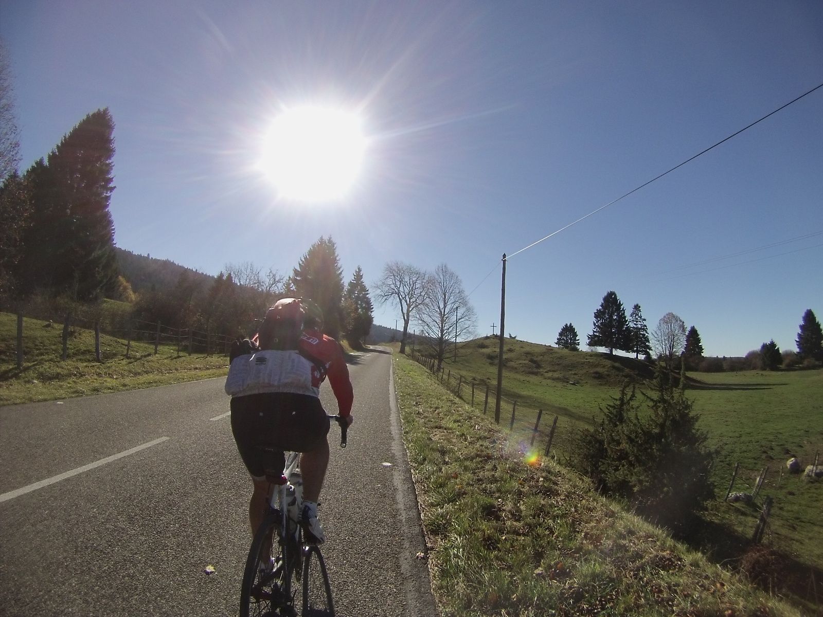 La route ondule désormais, pas de montée majeure à signaler ; nous franchissons les Chalesmes, Bief des Maisons, Arsure-Arsurette et Cornébiaud à bonne vitesse. L'effort est facile, on roule côte à côte et prenons quelques relais à vitesse 'grand fond' chacun notre tour.