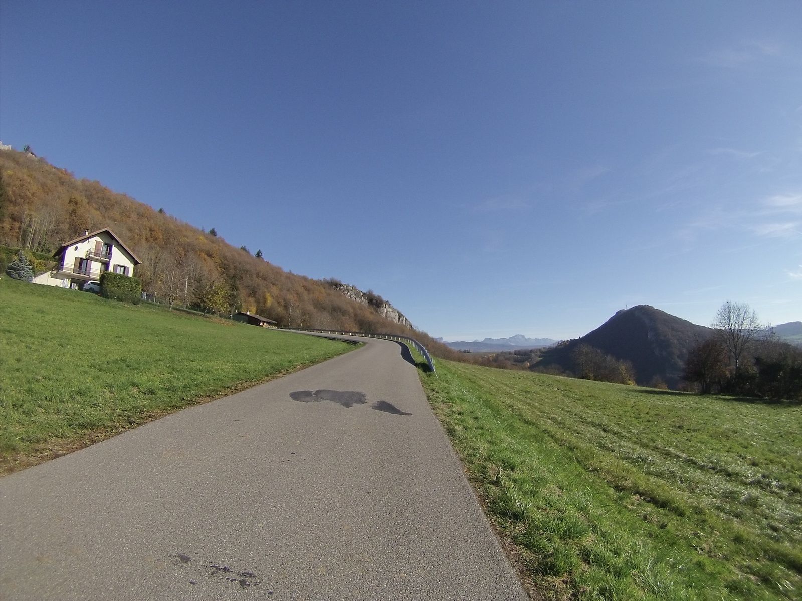 Et je ne serais pas surpris ! Je découvre ici une magnifique descente, sur une route où je ne croiserais pas une seule voiture (seulement quelques cyclos). La descente longe la petite colline, descend en la suivant, et replate peu avant d'atteindre Musièges.