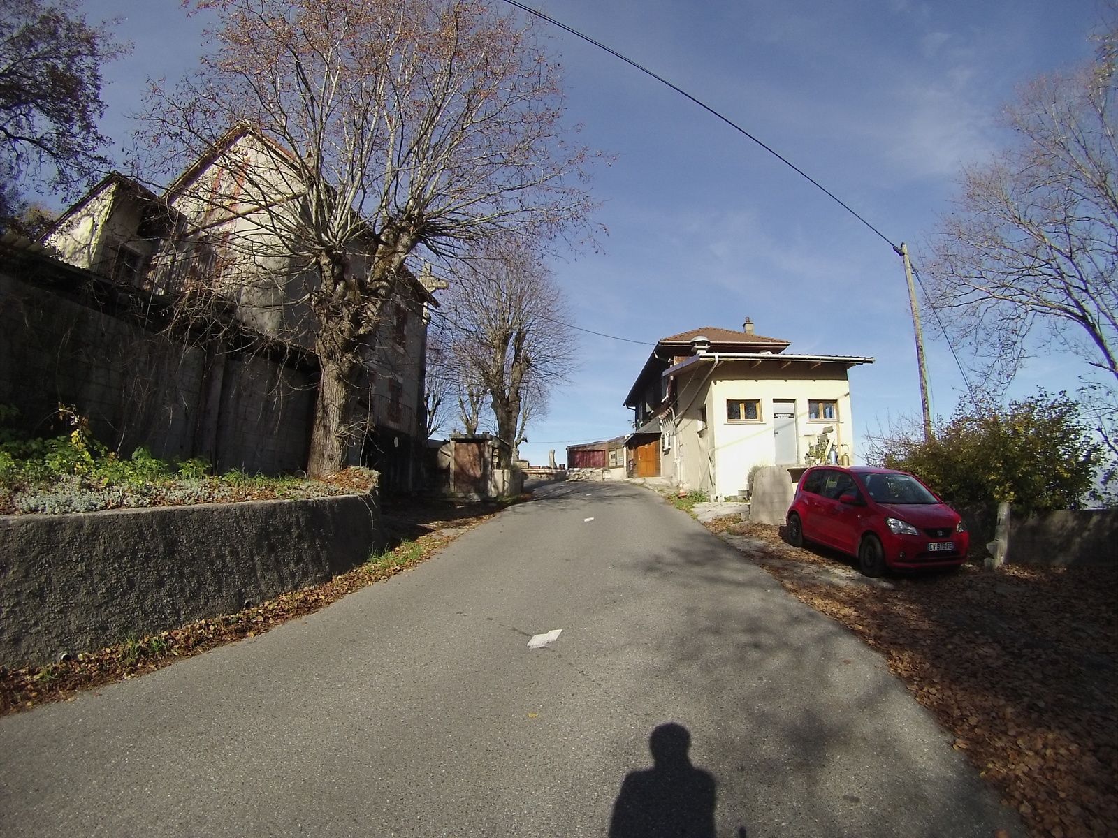 C'est donc la grimpée de Marlioz qui suit - elle est moins longue et difficile que dans mes souvenirs. Poursuite des opérations en descendant direction Minzier, mais en prenant à l'épingle à gauche rapidement pour grimper sur Contamine Sarzin... où nous avions sérieusement songé à acheter une maison il y a un an ! Puis au sommet, j'improvise encore un coup en prenant la direction de Musièges à droite.