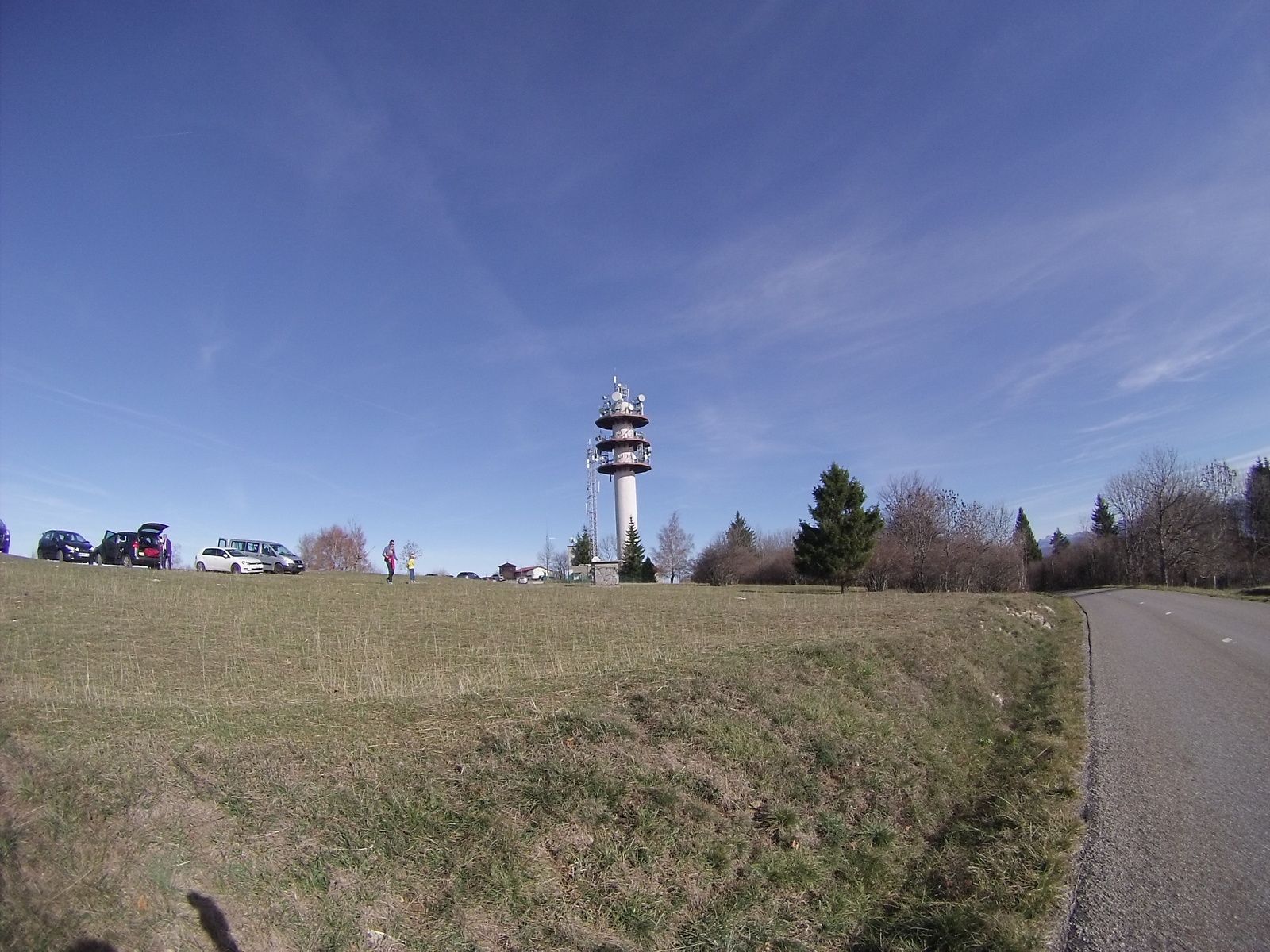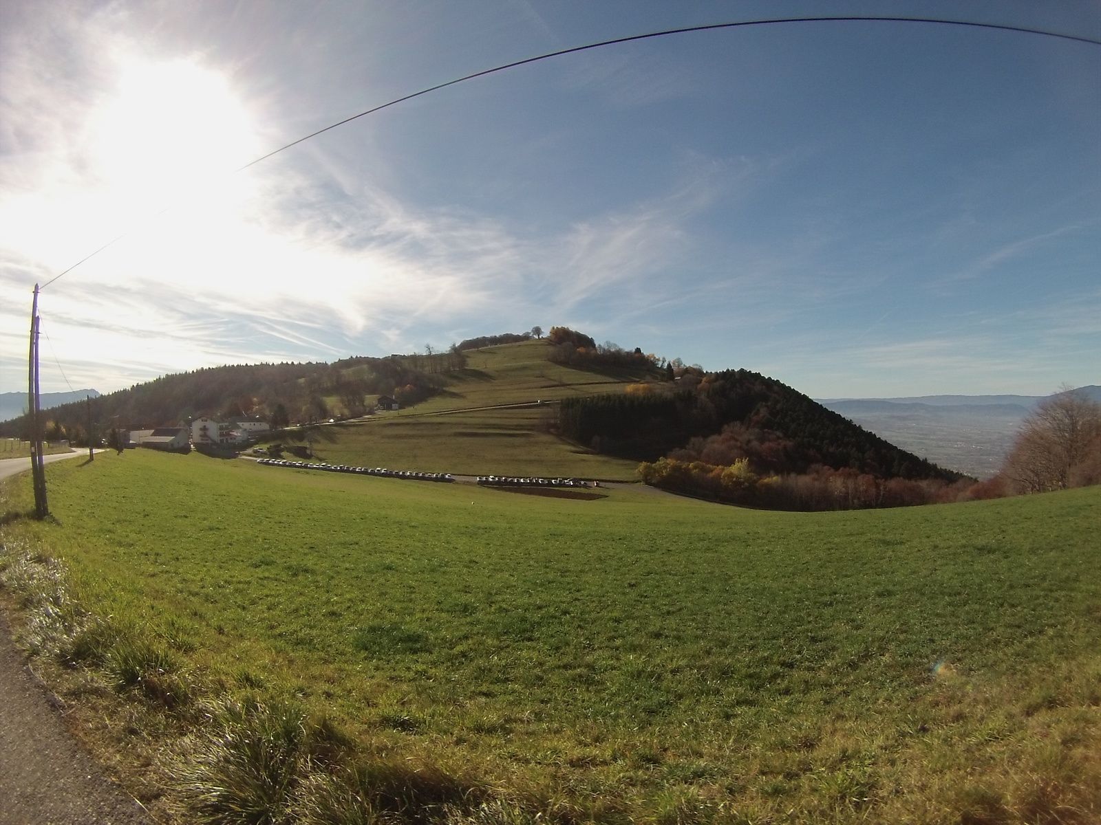Encore quoi, 3 kilomètres jusqu'au sommet ? Allez va, ça se fait bien. Je passe devant le monastère bouddhiste, puis la grande antenne... dernier virage à droite dans les champs, et enfin la route redescend. Pfiou, quelle suée.