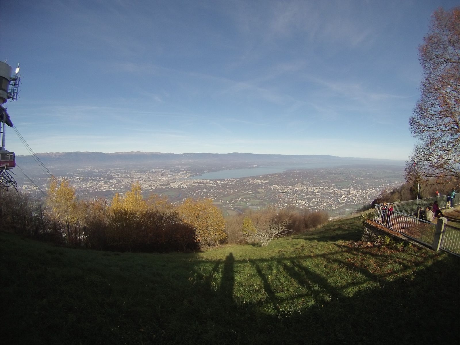 Ces 4 terribles kilomètres derrière moi, je retrouve des pourcentages plus calmes... mais là encore, même 7 ou 7.5%... c'est dur. Enfin, voici l'arrivée téléphérique du Salève, où je me dois de faire une pause pour prendre la photo traditionnelle de Genève en contrebas.