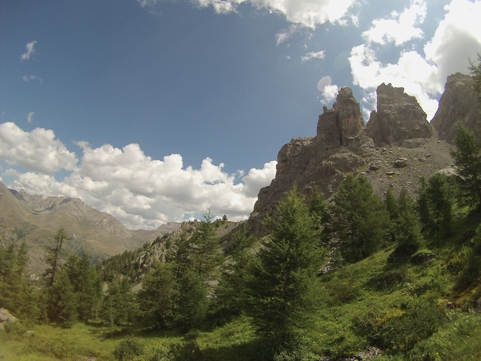 Je franchis plus loin un petit torrent, qui me permettra de faire une pause, nettoyer mes plaies, et faire un petit ‘point’ de situation. Il ne me reste plus grand-chose à descendre, et finalement, ce n’est pas le bout du monde. A la croisée des chemins, je retombe sur une bifurcation entre une piste VTT rouge et une bleue. Je n’hésite pas une seconde et prends la plus facile des deux ! Le retour se fait par les Guibertes au fond de la vallée.