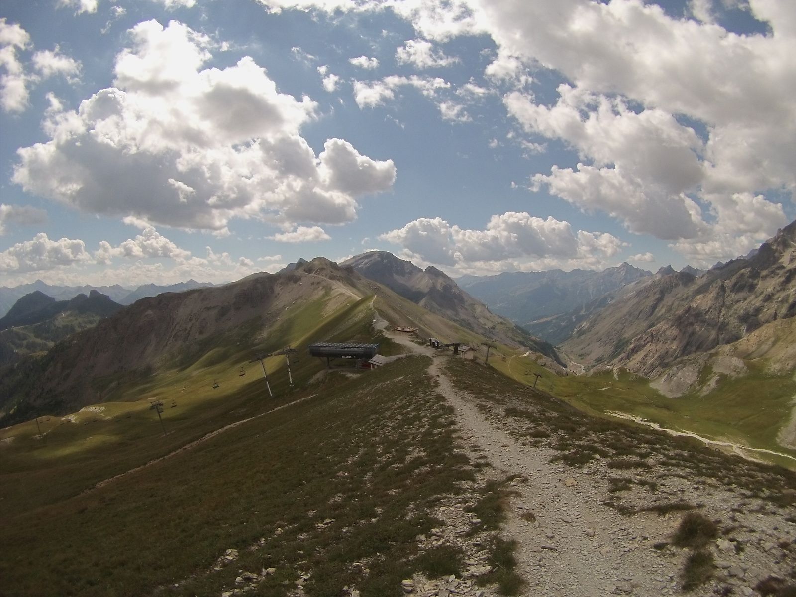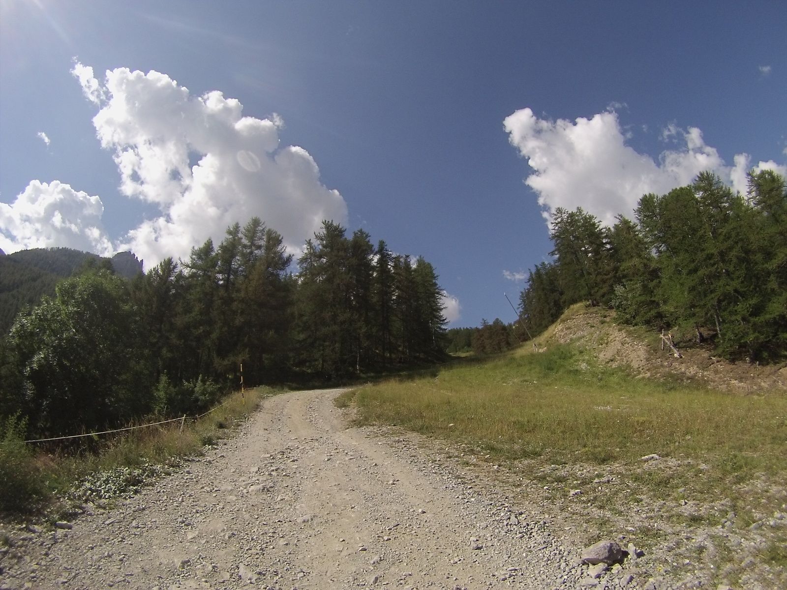 Courte pause au niveau du col, et je repars sur la piste menant au col de la Cucumelle (altitude 2501m)… ici, tout se fait à vélo, no problemo. Je fais un court détour à l’écart du long lacet formé par la piste de ski alpin, pour être sur de passer au niveau exact du col.