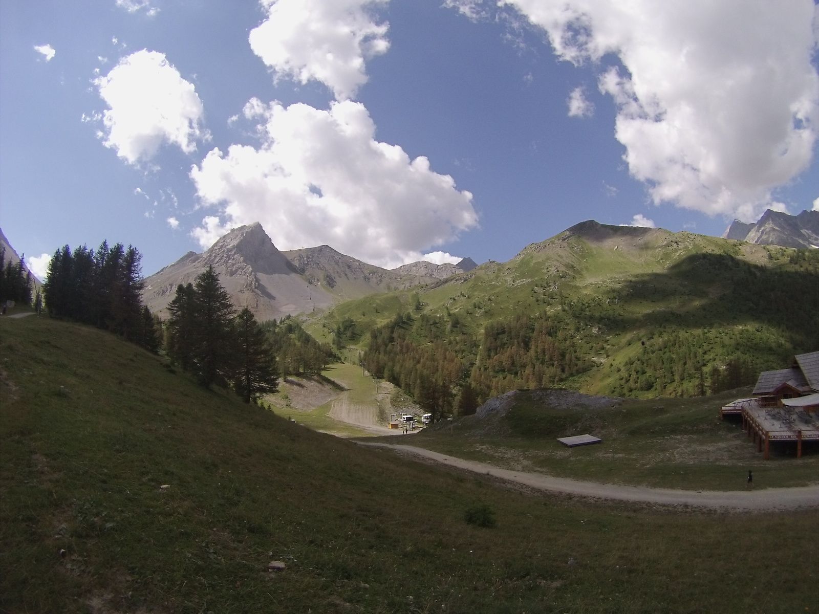 Départ après 10h, le temps de se lever tranquillement et d’aller louer un VTT au magasin du coin. N’ayant pas de carte IGN ni de carte topographique précise hors routes bitumées sur mon GPS, j’ai fait le choix de partir pédaler sur le domaine de ski alpin de Monétier les Bains, un domaine où je skie depuis que je suis petit, et que je connais donc comme ma poche. J’y ai déjà aussi fait quelques randonnées à pied l’été, même si la dernière date déjà d’il y a plus de 7 ans.