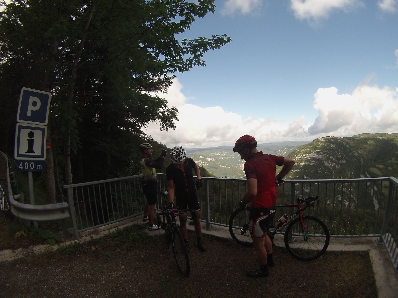 Daniel nous laisse partir au sommet, on continue à 4. Le chemin nous fait descendre sur Mijoux, remonter sur Lajoux, descendre sur Septmoncel, où nous bifurquerons à gauche pour la belle montée de Cernaise. Stop obligatoire au point de vue sur St Claude et les forêts du Jura !